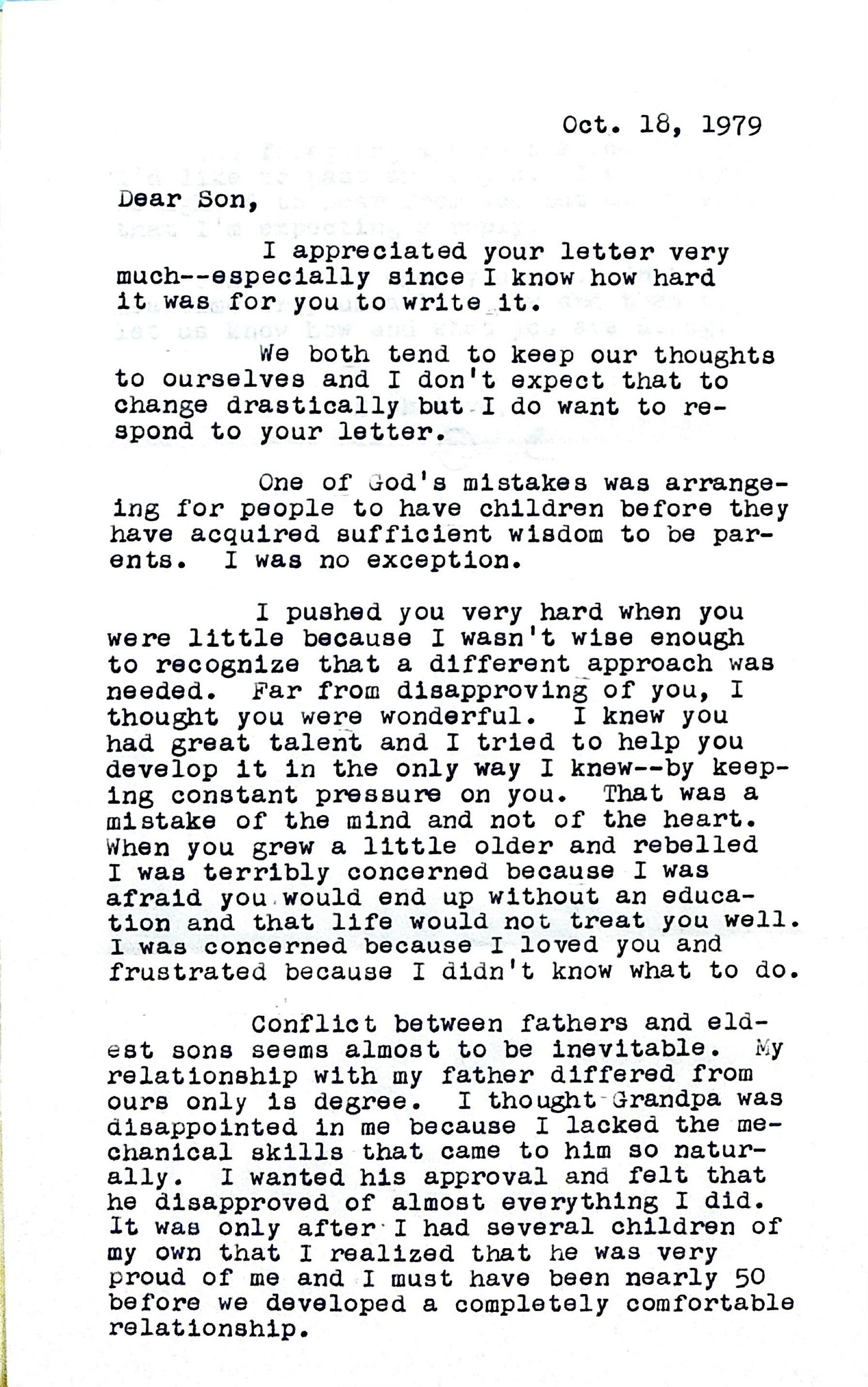 I suspect countless fathers have been beset by similar thoughts, but how many articulate them with such rawness? There’s a painfully honest tone to this letter, a pleading, desperate one. These are the words of a father who believes he’s lost his son—perhaps, irretrievably.